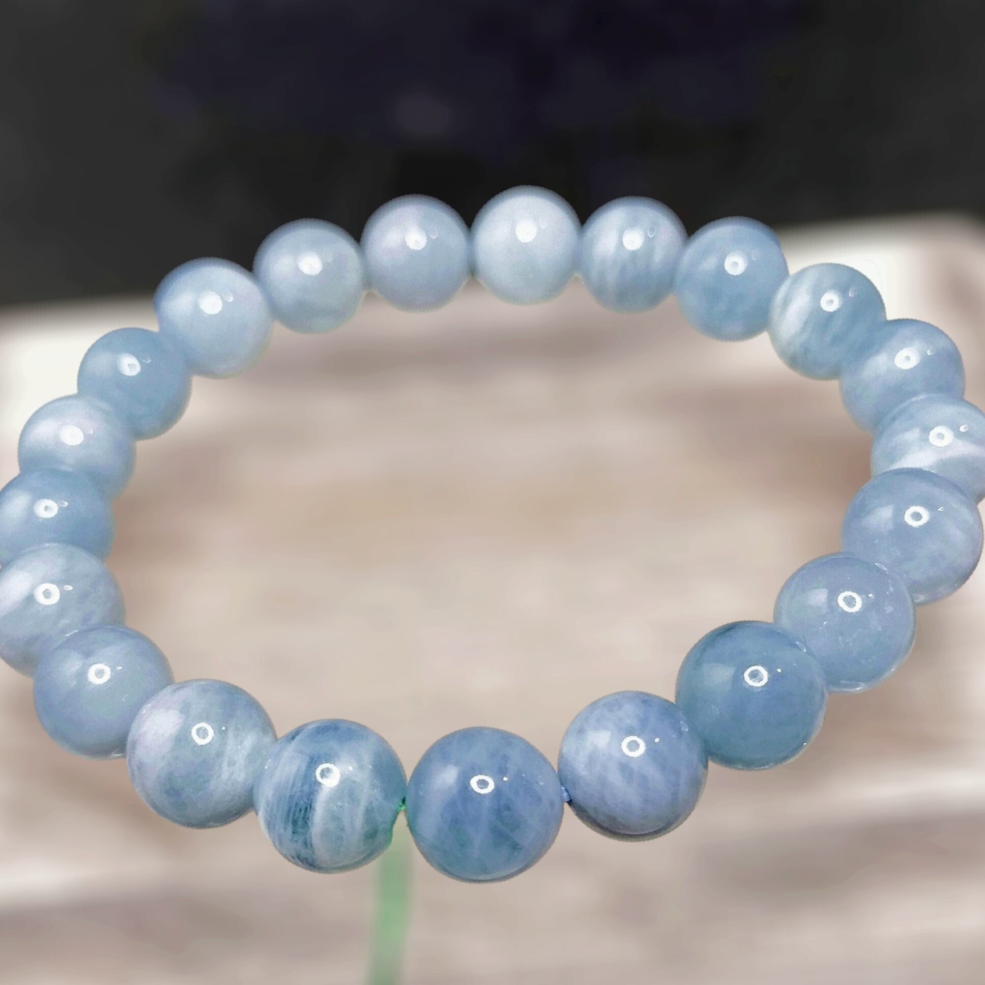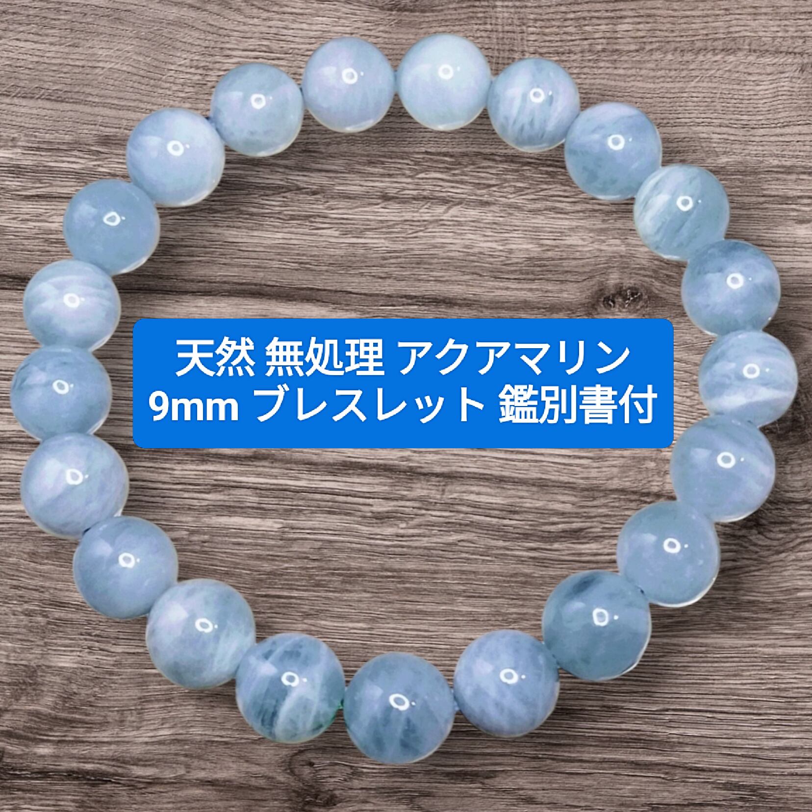 新品 未使用 天然石 オールドストック 高品質 天然 無処理 アクアマリン ブラジル産 希少 9~9.5mm 内径17cm 宝石鑑別書 鑑別書