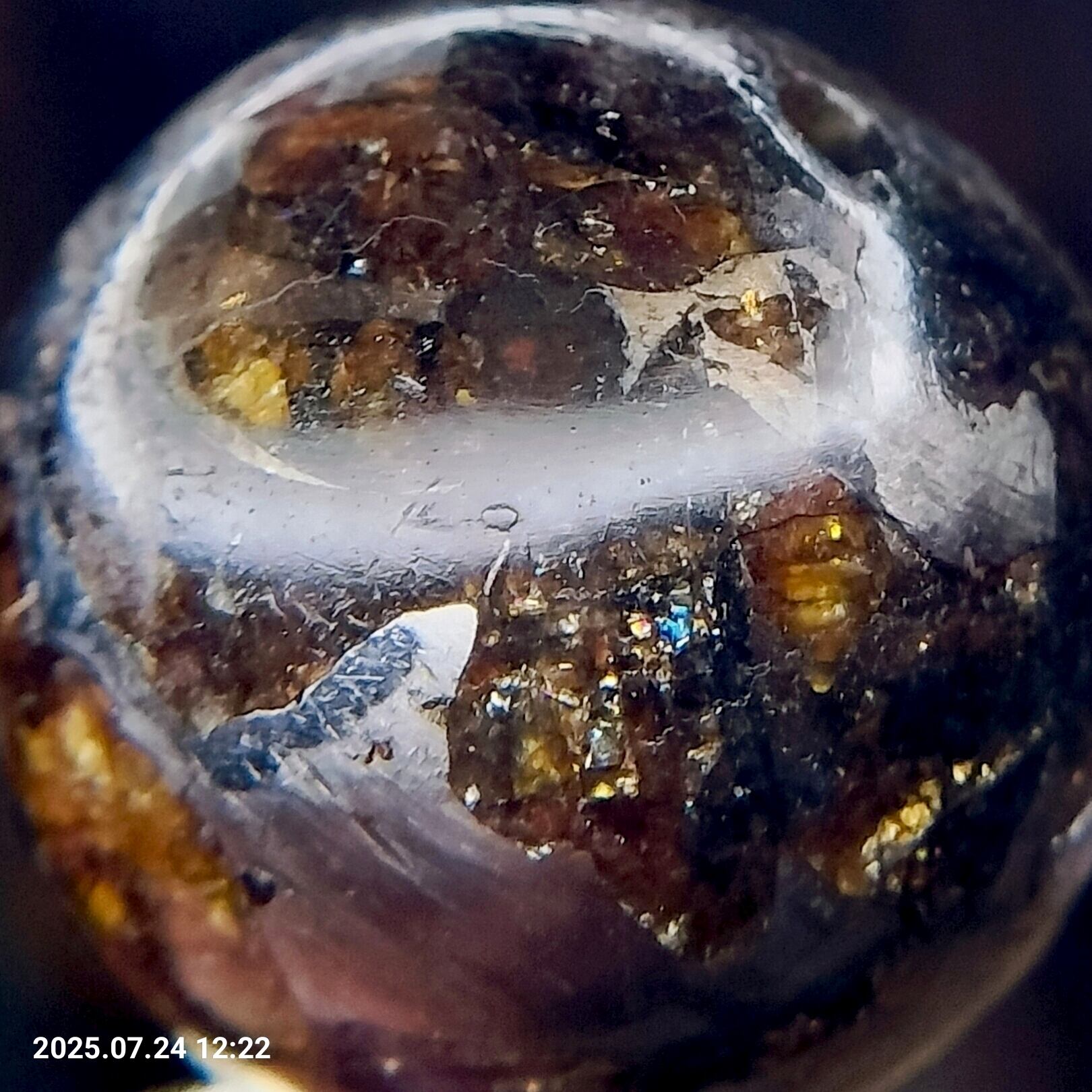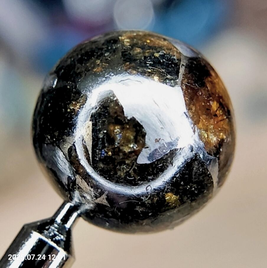 大変貴重なオールドストックの パラサイト隕石 ② 12.8mmの虹入りの粒を出品いたします。
