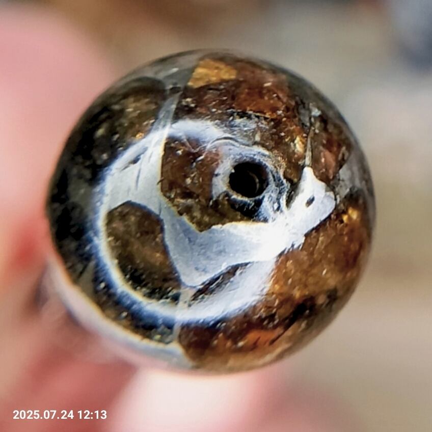 【 成約済み】超希少 高品質 パラサイト隕石 ② 12.8mm ビーズ 粒売り オールドストック コレクション 一点物 メテオライト カンラン石 ペリドット 虹