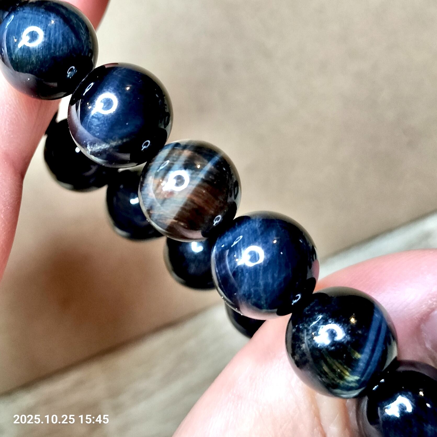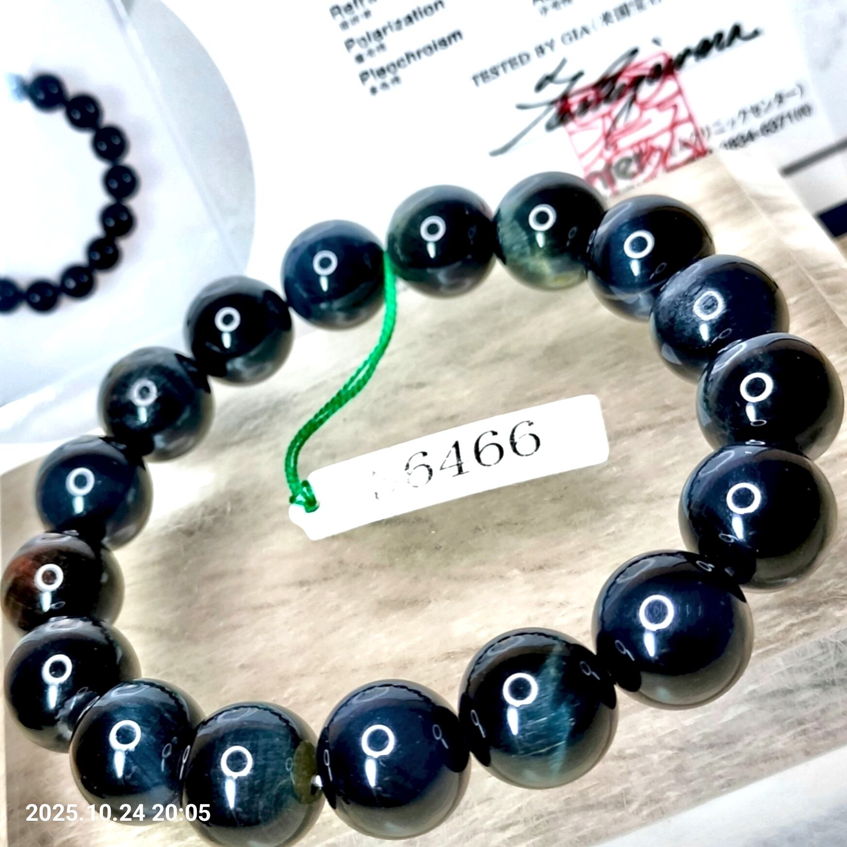 高品質 天然 無処理 ホークスアイ(ブルータイガーアイ)12mm ブレスレット 内径17.5cm 鑑別書付 仕事運 金運 パワーストーン 天然石