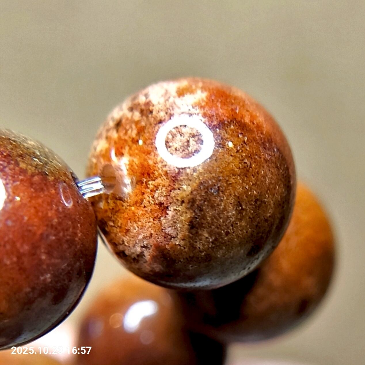 珠サイズは約11mmの存在感のある一本で、落ち着いたブラウンの内包模様が特徴で、一点一点表情の違う庭園水晶ならではの風合いがあります。