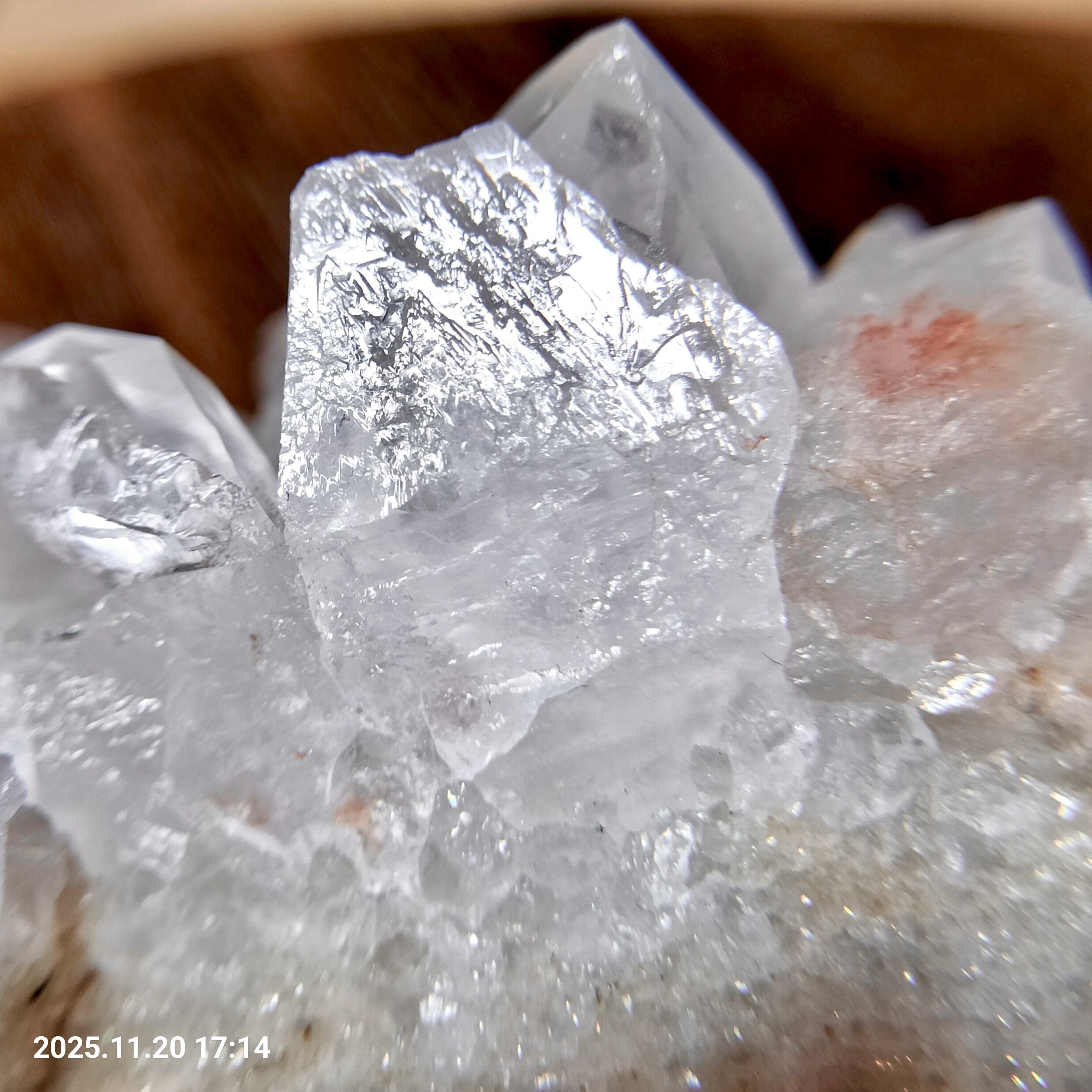 高品質 天然 ヒマラヤ マニカラン水晶 クラスター ピンクマニカラン 透明感 ツイン水晶 トライゴン バーコード 成長曲線 虹入り オールドストック コレクション 一点物 貴重 レア 木の器付き