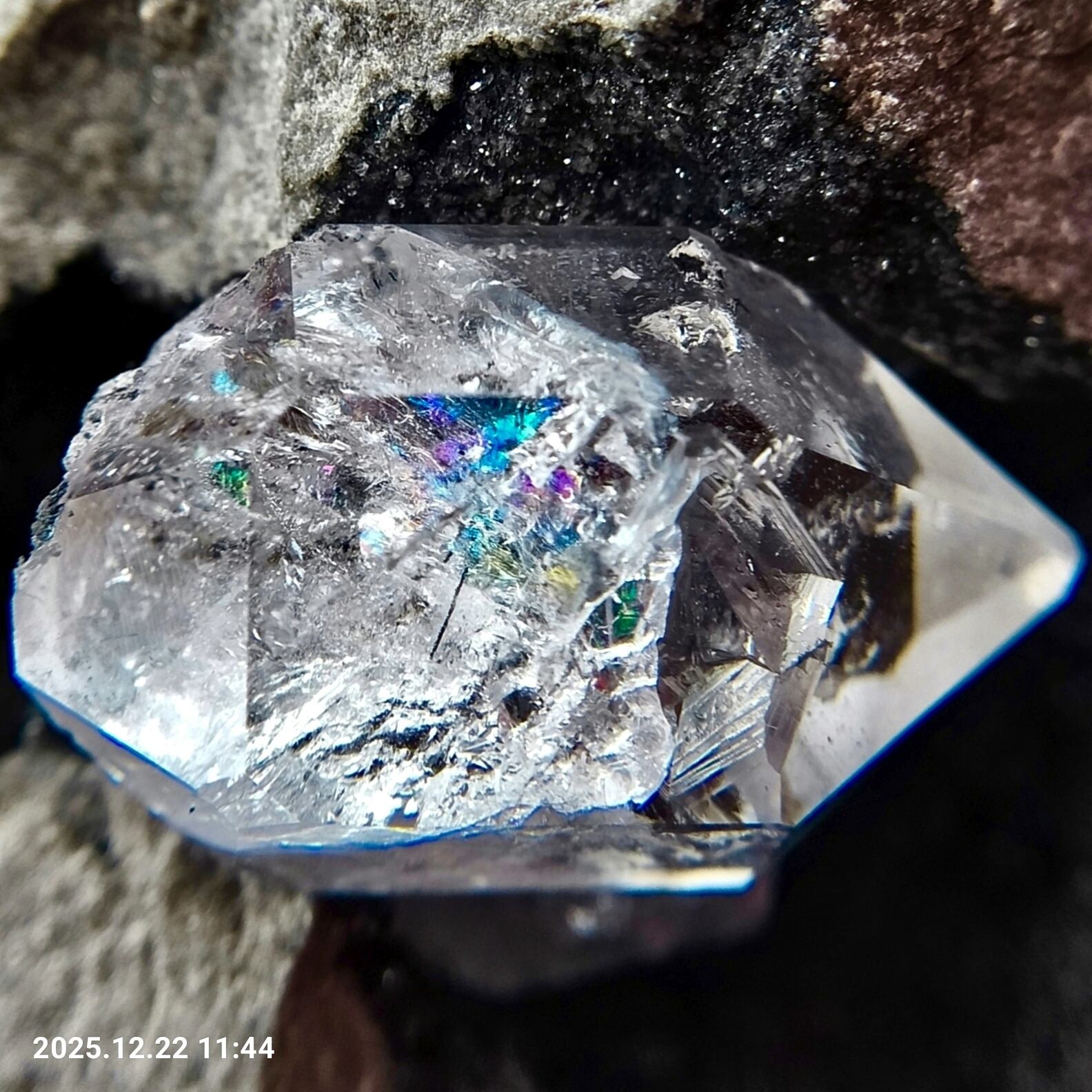 【 成約済み】USA産 ハーキマーダイヤモンド 母岩付原石 1,480g ニューヨーク州ハーキマー郡産 ダブルポイント レインボー 虹 天然水晶