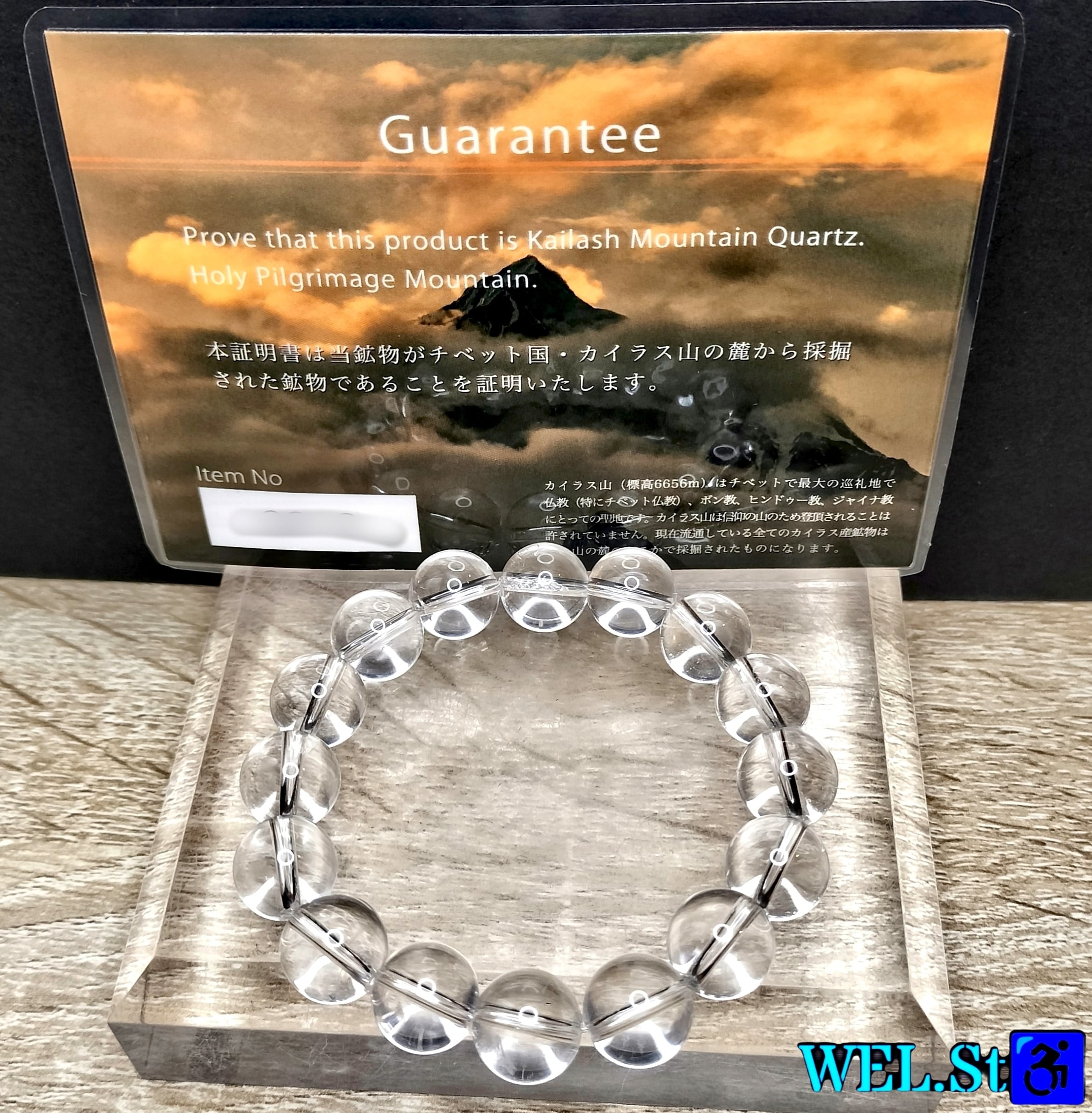 【 成約済み】最高品質 カイラス産 天然水晶 12mm ブレスレット① ヒマヤラ水晶 産地証明書付 虹 アイリス 高透明 無処理 パワーストーン
