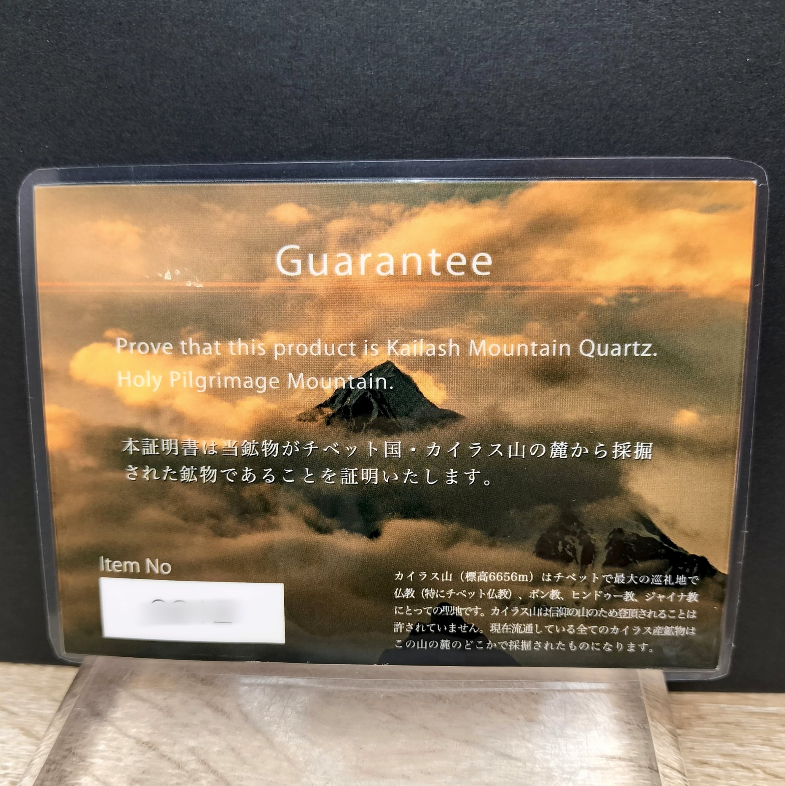 ※本品には画像のチベット カイラス山の産地証明書が付属します。