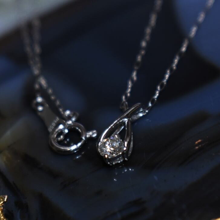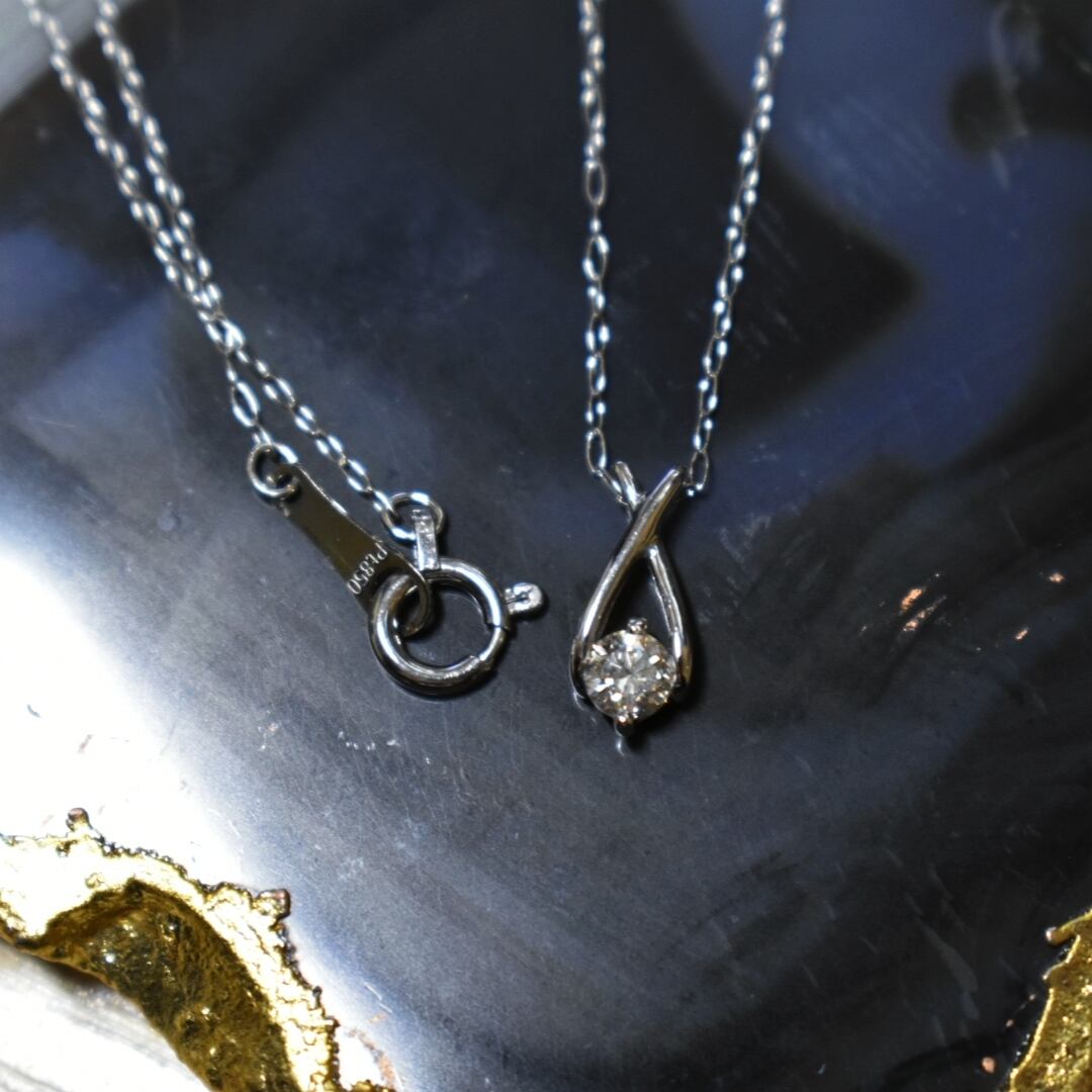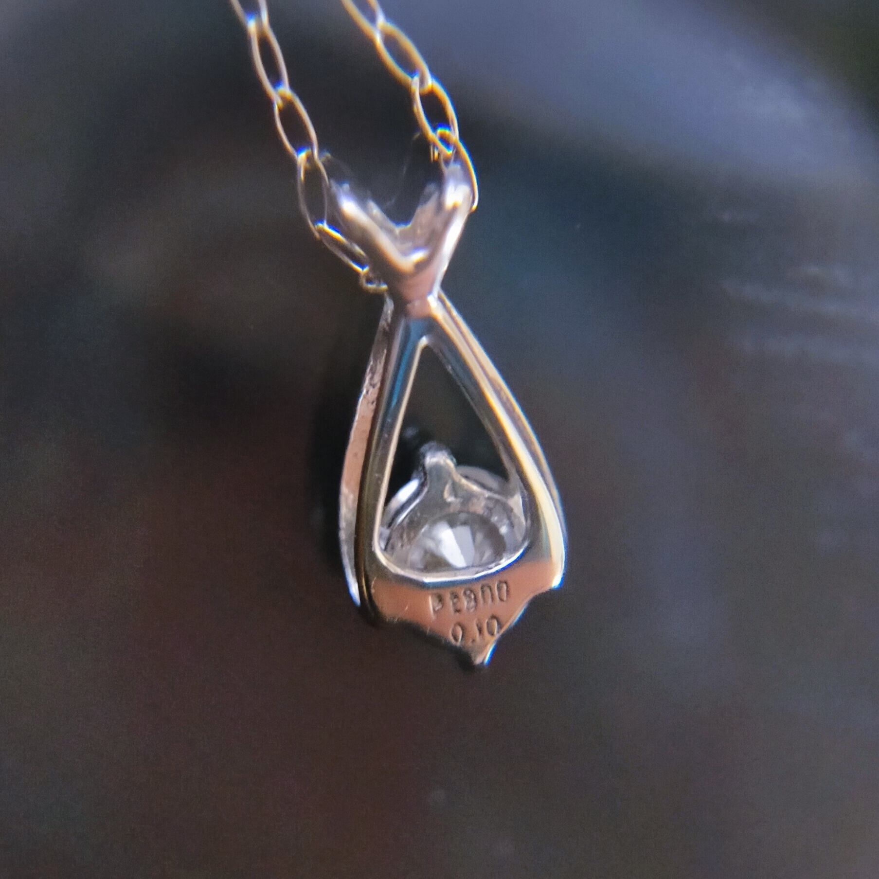 0.1ctの天然ダイヤモンドをプラチナ 900 の枠で作ったペンダントトップにプラチナ 850のネックレスになります。
